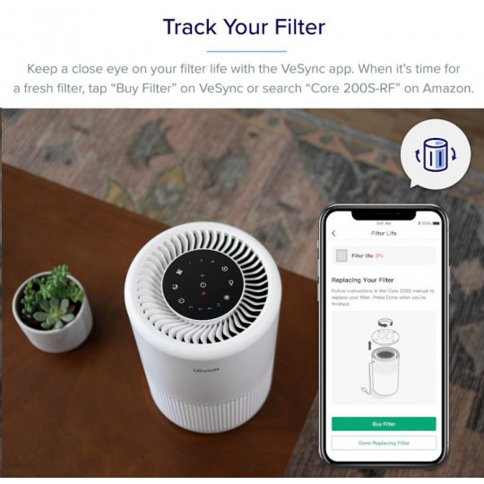 Chcete mať doma čistý vzduch ako prevenciu pred ochorením horných dýchacích ciest, alebo ste alergik alebo astmatik? Chytrá čistička Levoit CORE 200S Smart vďaka vysoko kvalitnej 3 vrstvovej filtrácii s filtrom HEPA H13 a maximálnu cirkuláciu vzduchu patentovanej technológie VortexairTM odstráni až 99,97% škodlivých látok a nečistôt, ktoré by ste inak dýchali. Ovládanie čističky vzduchu je v skutku jednoduché priamo na displeji, alebo sa ponúka ovládanie cez aplikáciu na chytrých zariadeniach Android alebo Apple (iOS). Čistička tiež môže byť dokonca ovládaná hlasom cez Alexu alebo Google Assistant. V noci oceníte nočný režim a technológiu QuietKEAPTM, vďaka ktorej váš spánok nebude prevádzkou čističky vzduchu rušený.