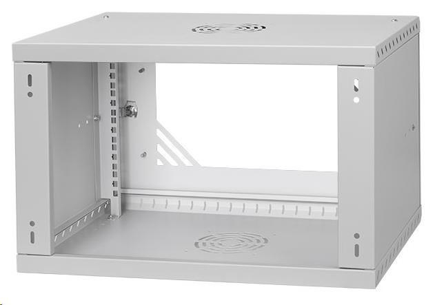 LEXI-Net 19" nástěnný rozvaděč Basic 6U 520x350, skleněné dveře, bez zad, rozložený, šedý