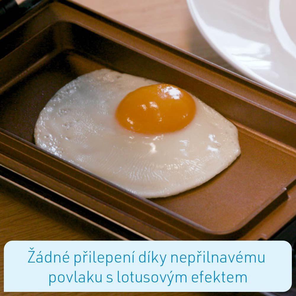 - Vrátane 3 vymeniteľných vložiek na prípravu XL omelet, grilovaných špecialít a vaflí