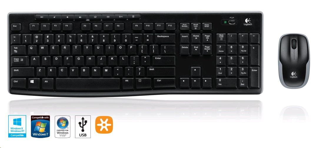 Logitech® Wireless Combo MK270. Spoľahlivá bezdrôtová súprava s miniatúrnym nano prijímačom Logitech Unifying®.