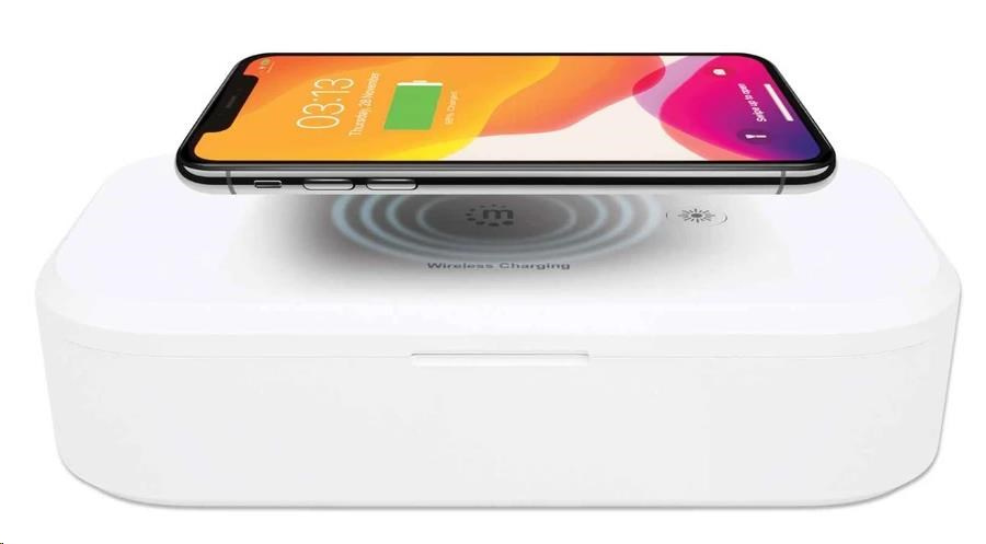 MANHATTAN UV-C dezinfekčné puzdro s bezdrôtovým nabíjaním, 10W bezdrôtová nabíjacia podložka, biela