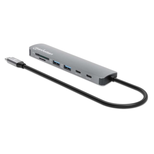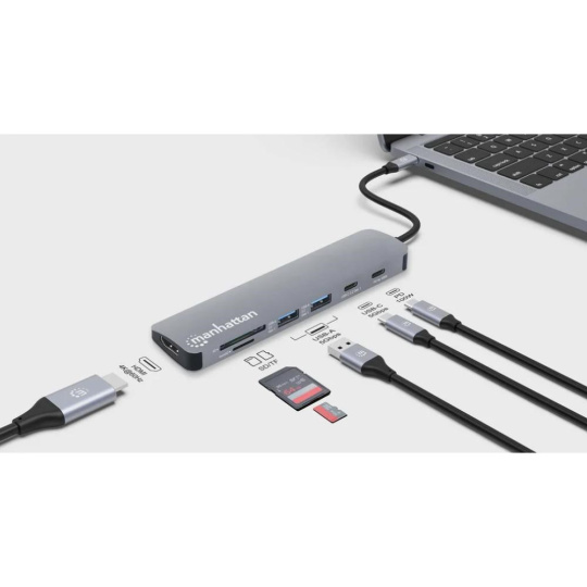 MANHATTAN Dokovací stanice USB-C 7v1, 1xHDMI, 2xUSB-C, 2xUSB, čtečka SD karet, šedá