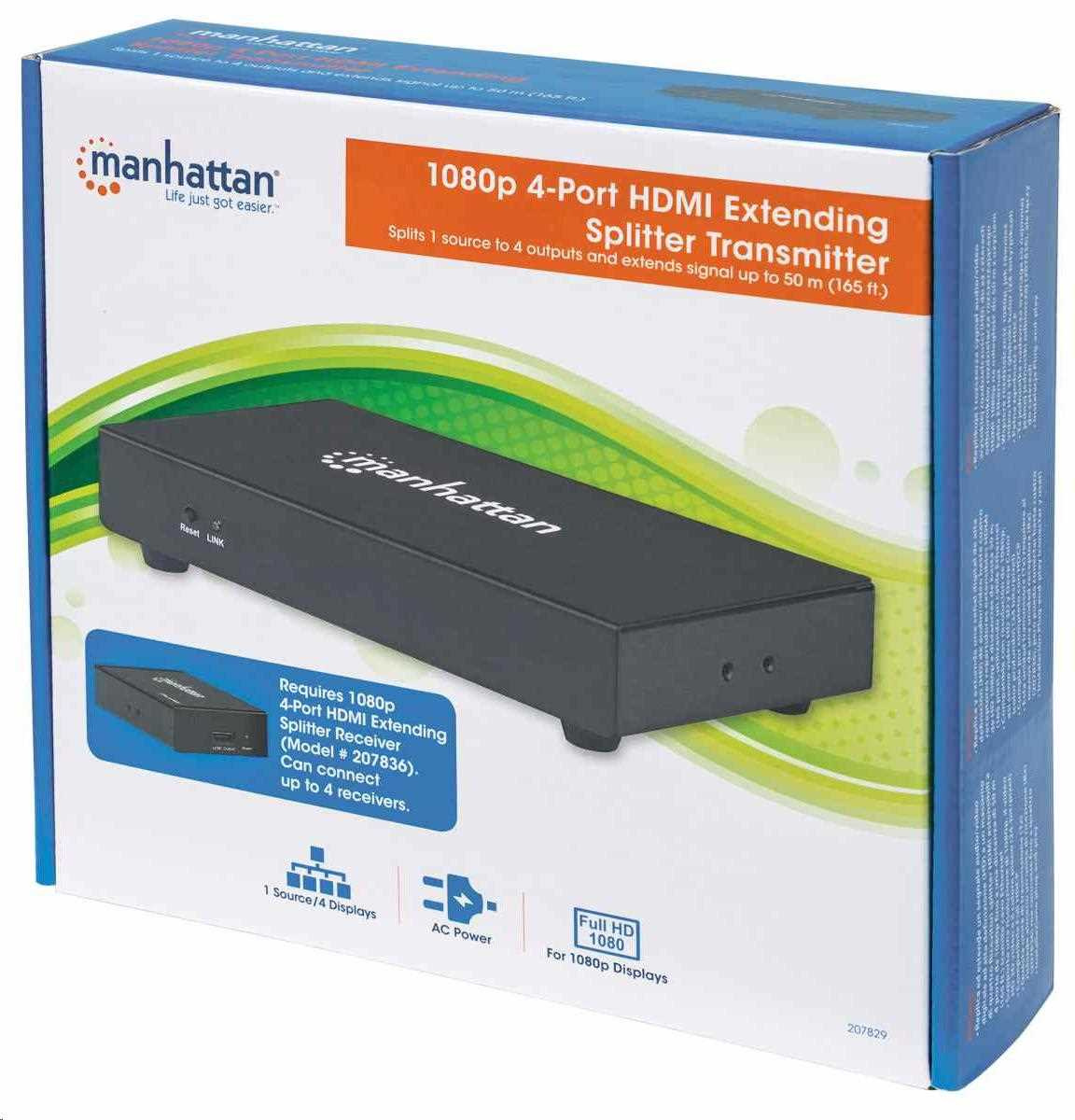 Manhattan HDMI Splitter, 1080p 4-portový rozdeľovač HDMI, čierny