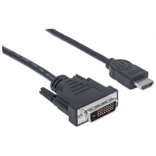 MANHATTAN HDMI samec na DVI-D 24+1 samec, dvojlinkové prepojenie, čierna farba, 1,8 m