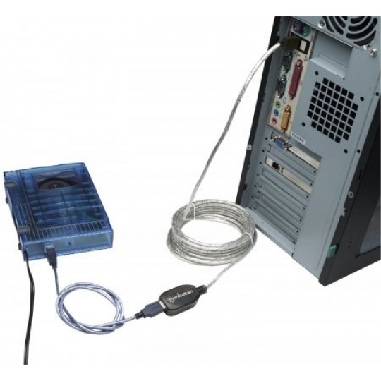 pomocou aktívneho kábla MANHATTAN Hi-Speed USB pripojíte port USB počítača k zariadeniu USB takmer kdekoľvek v miestnosti. Až tri káblové predĺženia s možnosťou reťazového zapojenia poskytujú pohodlný 15 m (50 ft.) pripojenie. Aktívny vysokorýchlostný kábel USB MANHATTAN so zabudovaným opakovačom je plne kompatibilný s rozhraním USB 1.1 a špecifikácie Hi-Speed USB, ktoré pomáhajú zariadeniam pracovať s maximálnym výkonom. Možnosť Plug and Play, univerzálnosť systému Windows7/8/Macintosh a žiadne požiadavky na externé napájanie alebo ovládače pomáhajú zabezpečiť väčšiu flexibilitu pri umiestňovaní počítačov a periférnych zariadení a pri usporiadaní kancelárie.