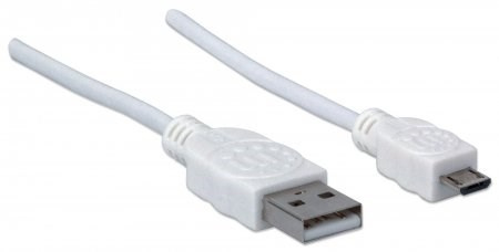 MANHATTAN Pripojovací kábel USB 2.0 A samec / Micro-B samec, 1.8 m, biela