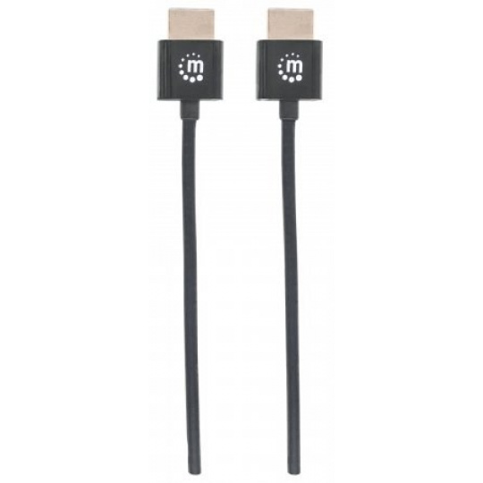 MANHATTAN Ultratenký vysokorýchlostný kábel HDMI s Ethernetom, HEC, ARC, 3D, 4K, HDMI samec - samec, tienený, čierny, 0,5 m