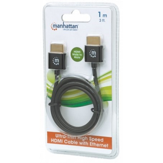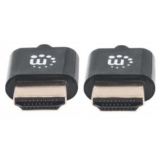 MANHATTAN Ultratenký vysokorýchlostný kábel HDMI s Ethernetom, HEC, ARC, 3D, 4K, HDMI samec - samec, tienený, čierny, 1 m