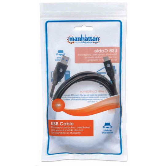 Káble Manhattan SuperSpeed USB typu C umožňujú jednoduché pripojenie periférnych zariadení a príslušenstva USB typu A k portom zariadení typu C. Tieto káble sú ideálne na použitie s akýmkoľvek zariadením USB typu A typu plug-and-play a podporujú prenos dát rýchlosťou až 5 Gb/s v systémoch Windows a Mac pre rýchle a spoľahlivé prenosy a prúd až do 3 A. Poniklované kontakty, tienenie a plne tvarované pätky s odľahčením ťahu pomáhajú zabezpečiť spoľahlivé pripojenie, maximálnu vodivosť a minimálnu stratu dát pri zníženom rušení EMI.