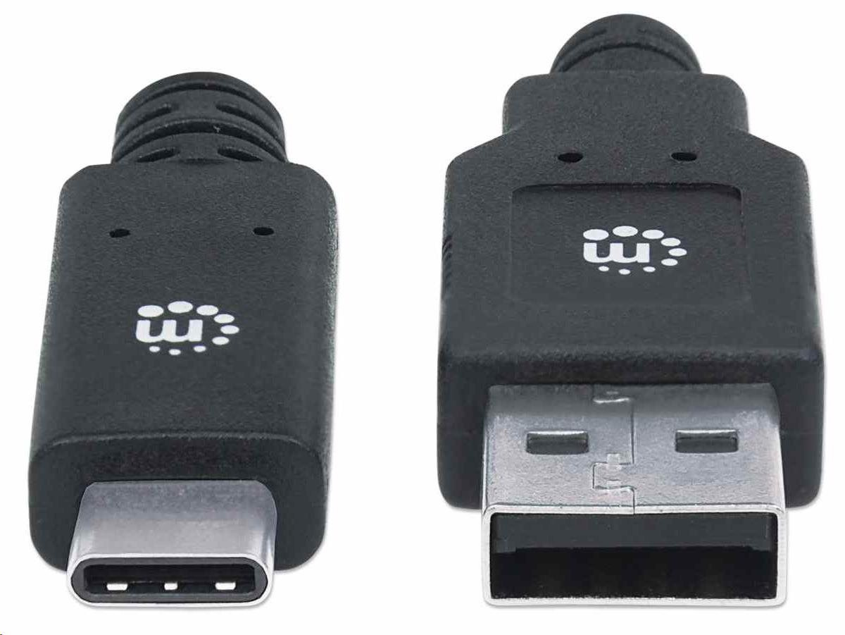 Kábel USB Manhattan, USB 3.2 Gen 1, USB-A samec na USB-C samec, 5 Gb/s, 2 m, čierna