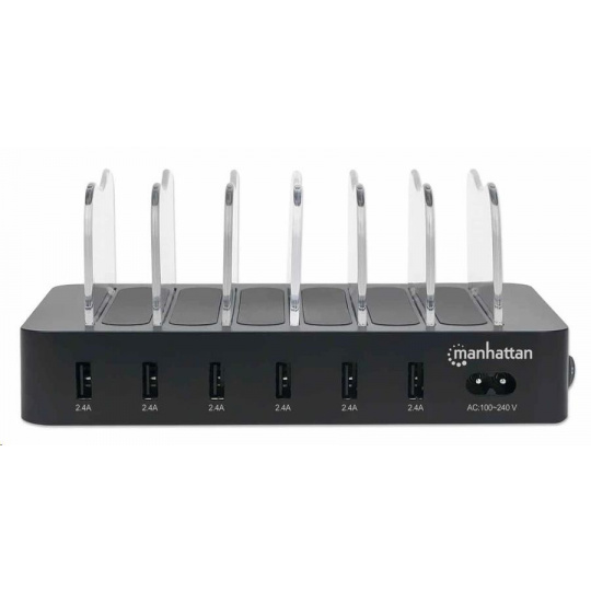 Prenosná elektronika s rozhraním USB kladie vysoké nároky na napájanie batérií a 6portová nabíjacia stanica Manhattan USB pomáha udržiavať vaše tablety, mobilné telefóny, digitálne fotoaparáty a ďalšie zariadenia nabité a pripravené na použitie. Táto nabíjacia stanica sa pripája do akejkoľvek štandardnej zásuvky a ponúka rýchle nabíjanie. Stanica s celkovým výkonom 50 W ponúka technológiu Smart IC na optimalizáciu nabíjania zariadení. Každý port podporuje až 5 V/2.4 A na rýchle nabíjanie smartfónov a iných prenosných zariadení. Okrem toho inteligentne chráni seba a vaše zariadenia pred skratom, prepätím, nadprúdom a prehriatím.