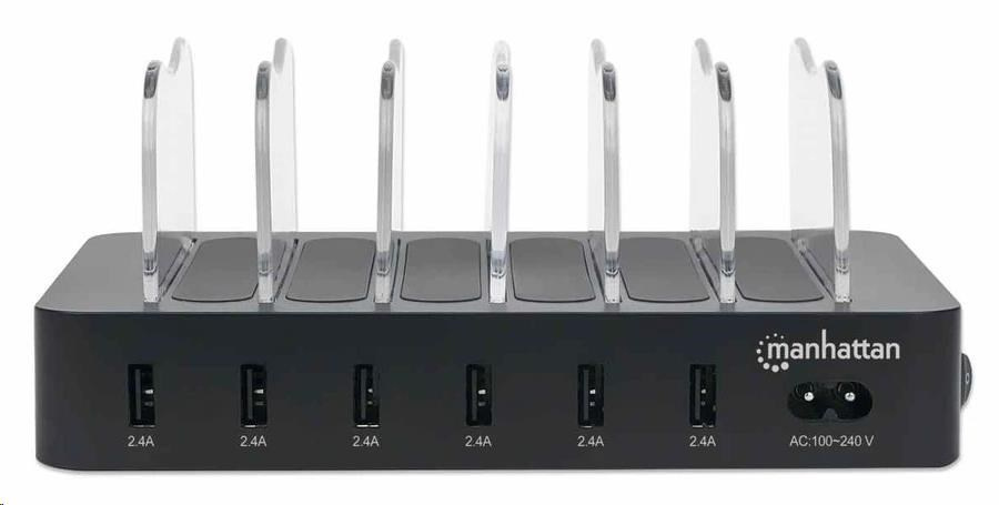 Manhattan USB nabíjacia stanica, 6-portová USB nabíjacia stanica, USB-A, čierna