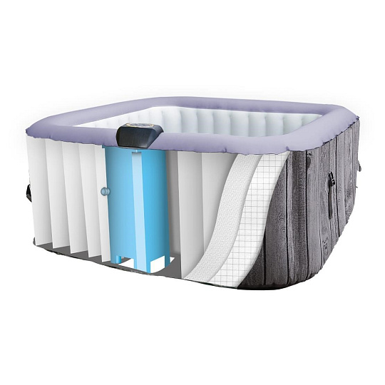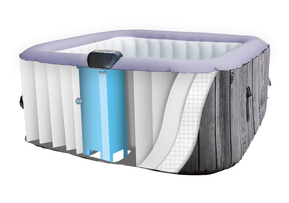 Laminovaná tkanina s termoizolačnou a UV ochrannou vrstvou zaručuje vynikajúci výkon vírivky. Je to dokonalá kombinácia kvality, pevnosti a stability. Kartušový filter pomáha odstrániť nečistoty, prach a ďalší špinu. Balenie obsahuje snímateľný potah, ktorý zachytáva vlasy a drobné smietky.