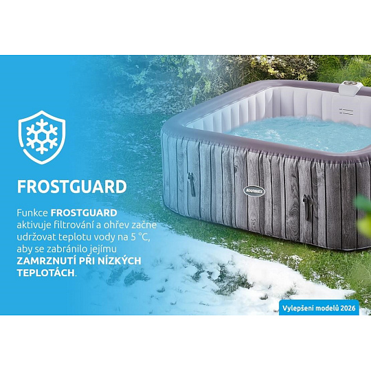 Vírivý bazén Aquamar P6002 disponuje funkciou Frostguard, vďaka ktorej ohrev začne udržiavať teplotu vody na 5 °C, aby sa zabránilo jej zamrznutiu pri nízkych teplotách.