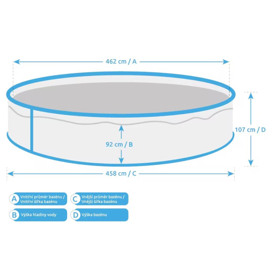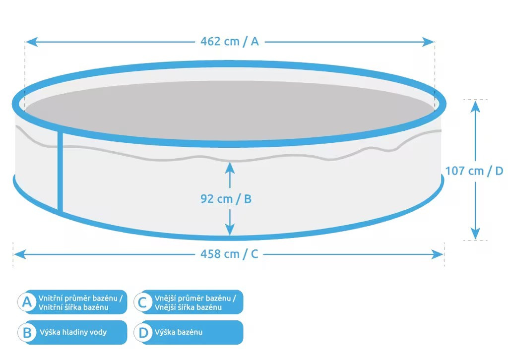 Ostatné príslušenstvo (schody, podložka, krycia plachta) je potrebné dokúpiť zvlášť. Bazén je vhodný aj na využitie so slanou vodou, je možné k nemu pripojiť solinátor (za podmienky, že filtrácia má dostatočný výkon pre daný solinátor). Návod na zostavenie bazéna obsahuje aj príslušenstvo, ktoré nie je v balení a je nutné ho dokúpiť zvlášť.
