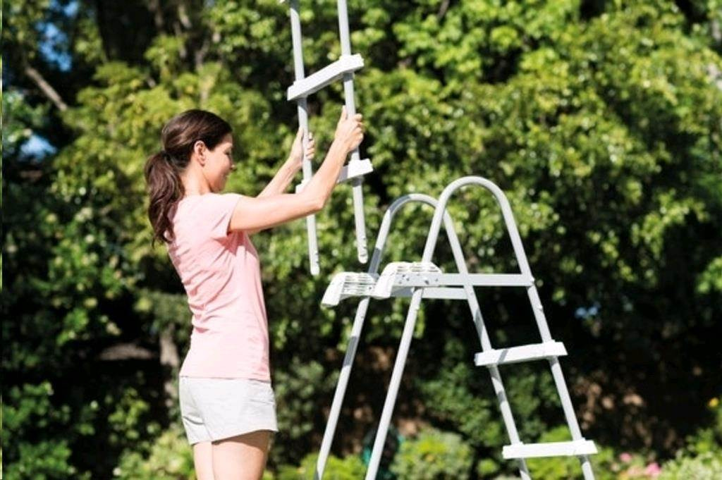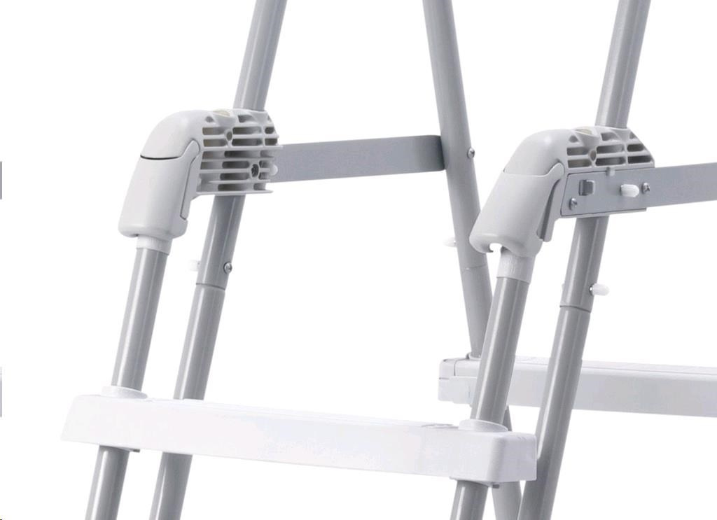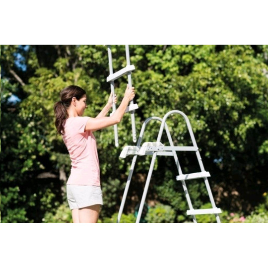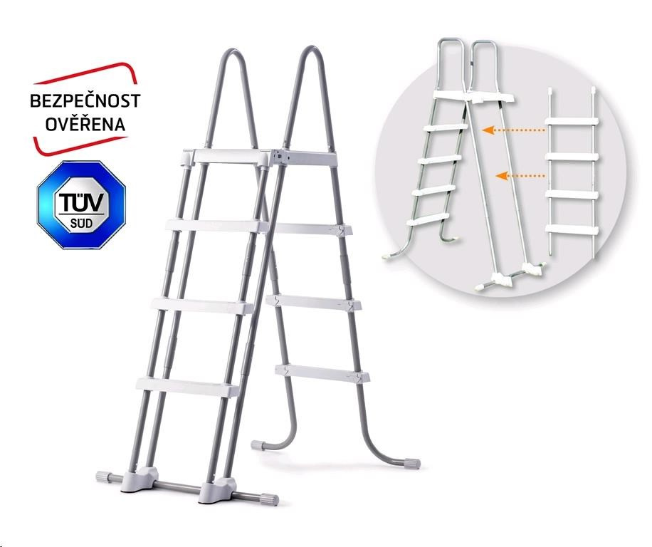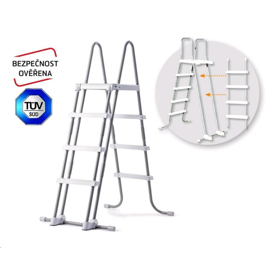 Bezpečnostné rebríky na bazény do výšky 1,25 m. Šírka schodu je 33 cm. Rebríky majú plastovú hornú základňu. Rebríky majú odnímateľné stupienky - pri ich vybratí zabránite nekontrolovanému vstupu detí do bazéna. Max. nosnosť 136 kg.