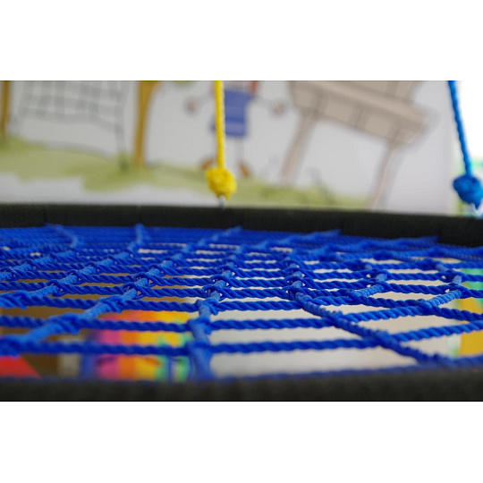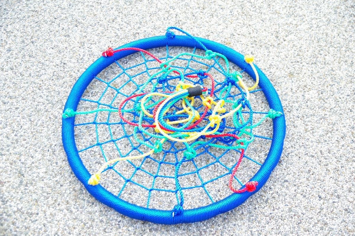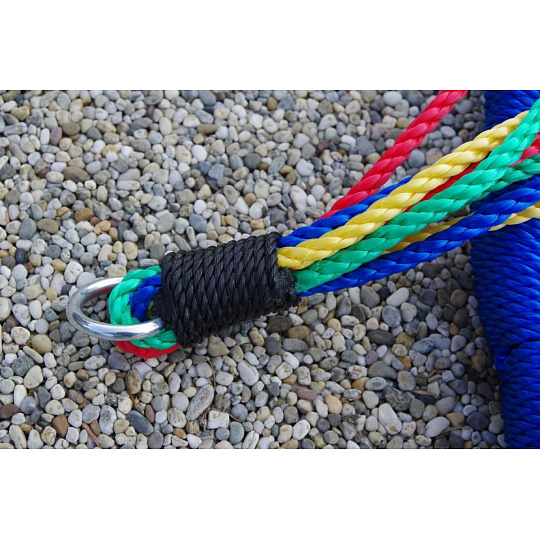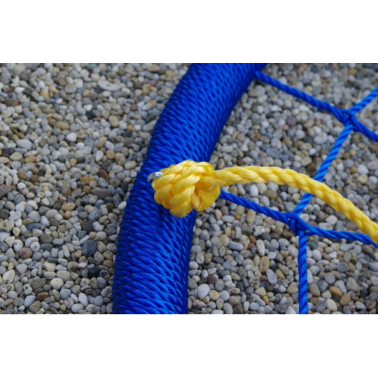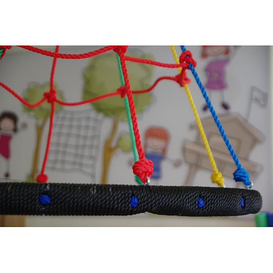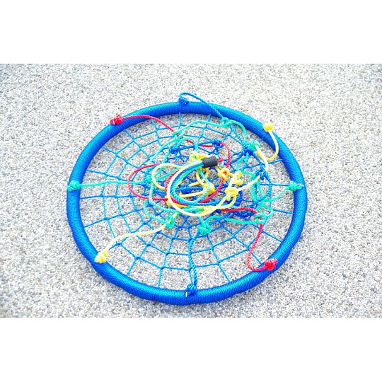 Závesná hojdačka vo tvaru kruhu je svojím priemerom 100 cm a nosnosťou až 150 kg ideálna nielen pre deti, ale aj dospelých. Veľká sedacia plocha hojdačky ponúka voľnosť pri hojdaniu aj dostatočný priestor na lenivosť. Hojdačka je zavesená na 4 dĺžkovo nastaviteľných lanech, ktoré sú zakončené kovovými krúžkami pre zavedenie na nosnú konštrukciu.