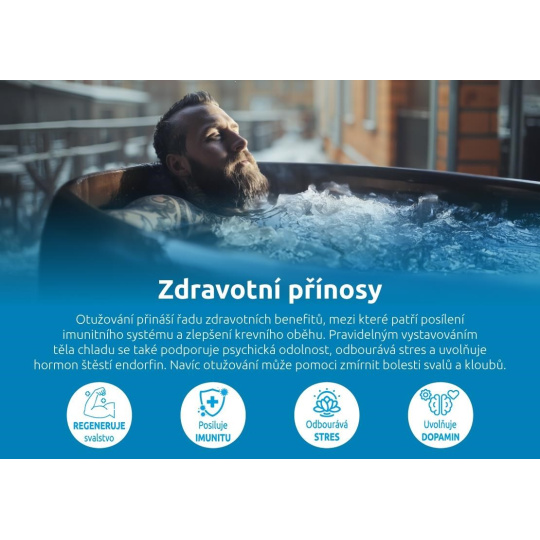 Ochlazovacia vaňa je skvelým pomocníkom pre tréning tela aj mysle. Uvoľňuje stres a namáhavé svaly, posilňuje imunitu, zlepšuje cirkuláciu krvi, zvyšuje schopnosť sústredenia a navyše podporuje spaľovanie tuku.