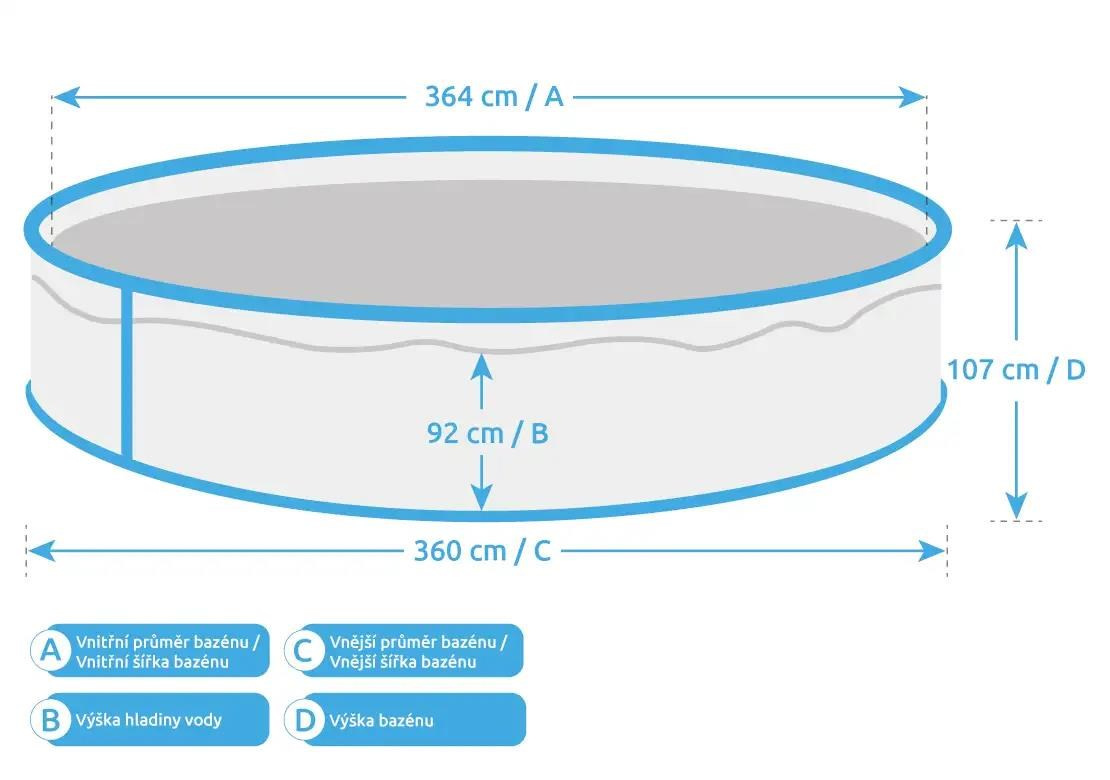 Návod na sestavení bazénu obsahuje i příslušenství, které v balení není a je nutné ho dokoupit zvlášť.