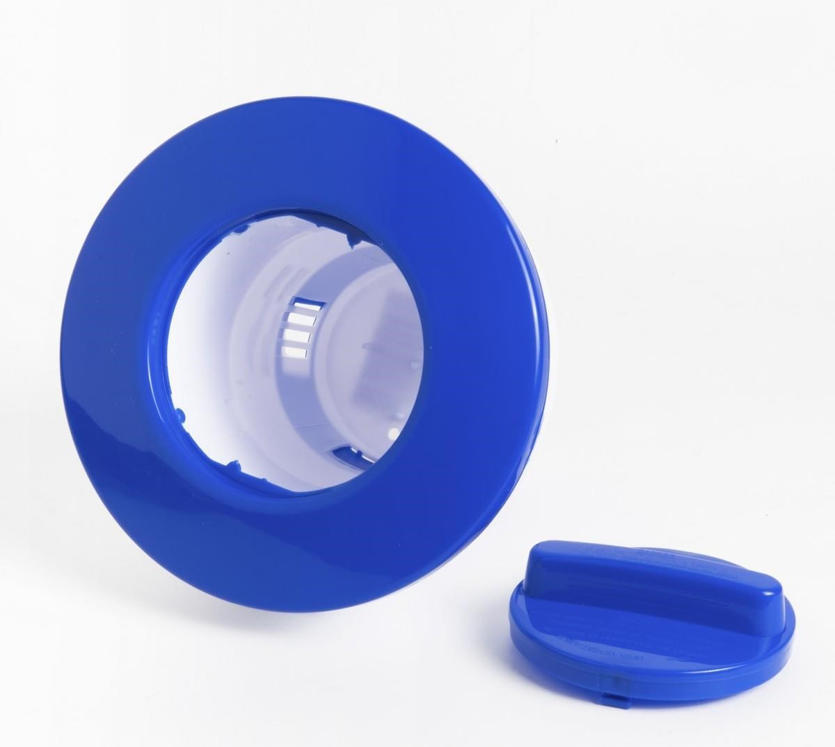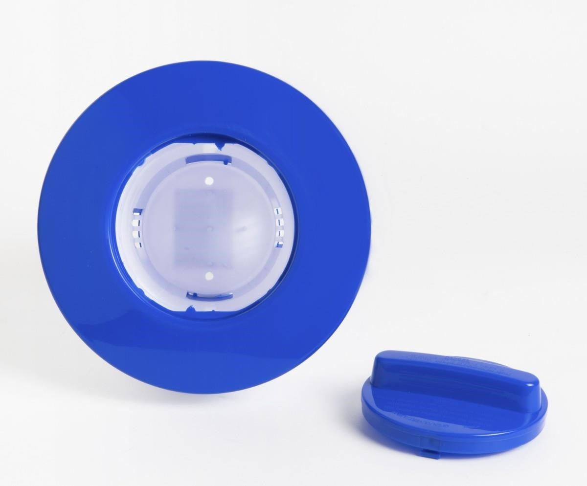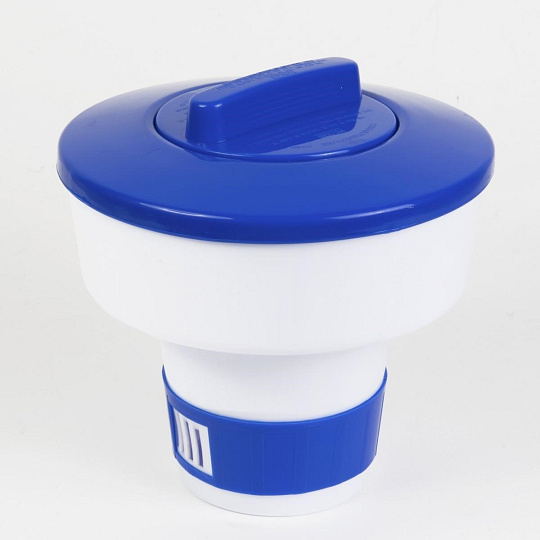 Plávajúci plastový dávkovač s regulačnou mriežkou pre chlorové tablety.