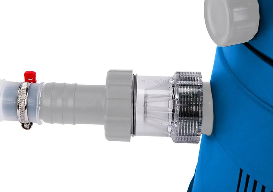 Kromě atraktivního moderního designu potěší také svými kompaktními rozměry, prakticky zabudovaným čerpadlem se sítem hrubých nečistot přímo v těle nádoby. 6cestný ventil nabízí mimo jiné i odlehčenou polohu pro zimní odstávku.
