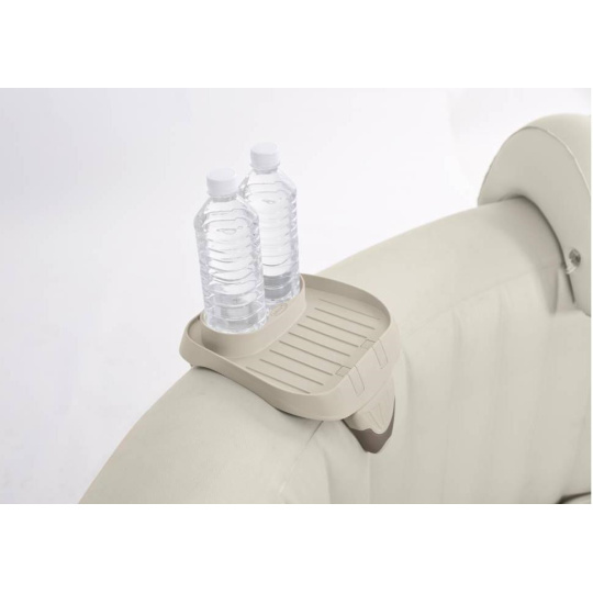 Praktický držiak na nápoje, ktorý slúži na odkladanie drobností alebo malého občerstvenia a má dve otvory na fľaše. Držiak je určený pre nafukovacie vírivky Intex Pure Spa. Hodí sa pre všetky nafukovacie vírivky s hrúbkou steny medzi 20-24 cm.
