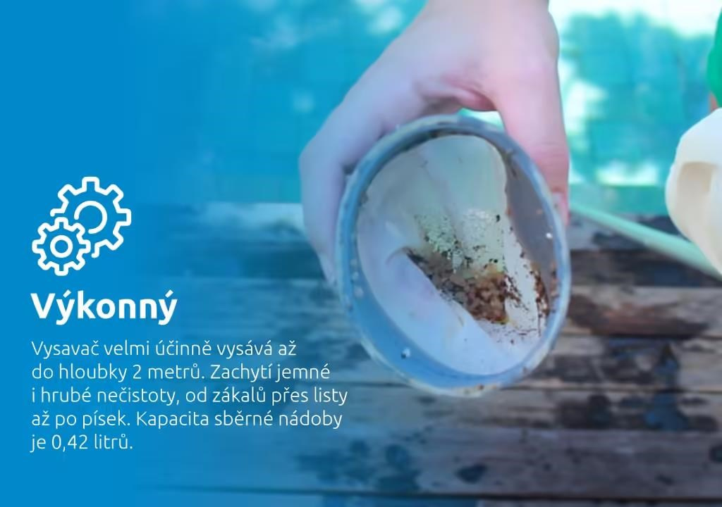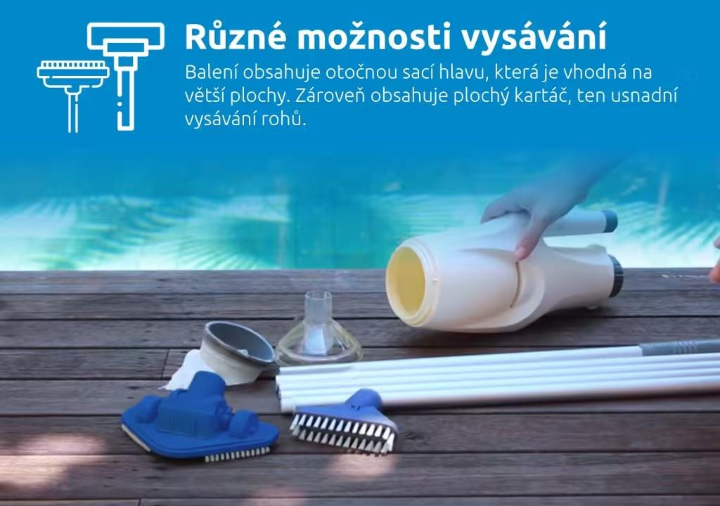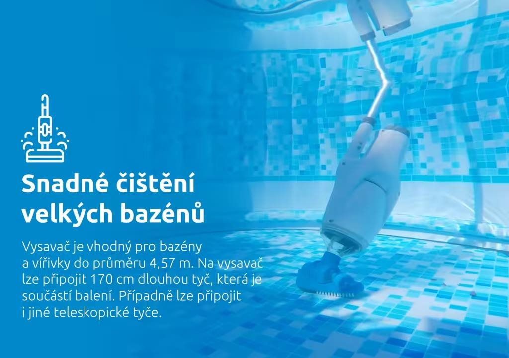 Bazénový vysavač Marimex StarVac Columbia je vhodný pro nadzemní bazény, zapuštěné bazény a vířivky do průměru 4,57 m. Vysavač je určen pouze pro použití pod vodou. Zachytí i hrubé nečistoty, jako je například písek. V balení najdete otočnou sací hlavu a plochý kartáč. zachytí i hrubé nečistoty, jako např. písek výkon... viac
