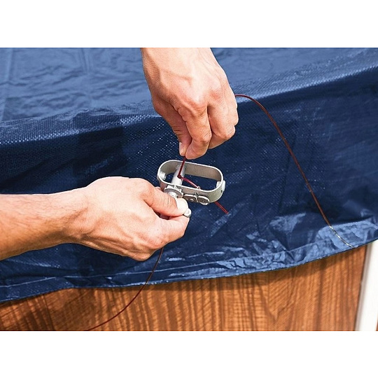 K bazénu ju jednoducho a rýchlo upevníte pomocou šnúry a napínača s ráčkou. Oceľová šnúra potiahnutá plastovou ochrannou vrstvou aj napínač s ráčkou sú súčasťou balenia.