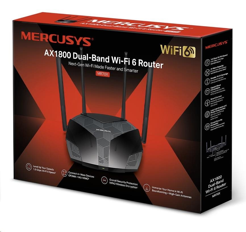 MERCUSYS MR70X Aginet WiFi6 router (AX1800, 2,4GHz/5GHz, 3xGbELAN, 1xGbEWAN)