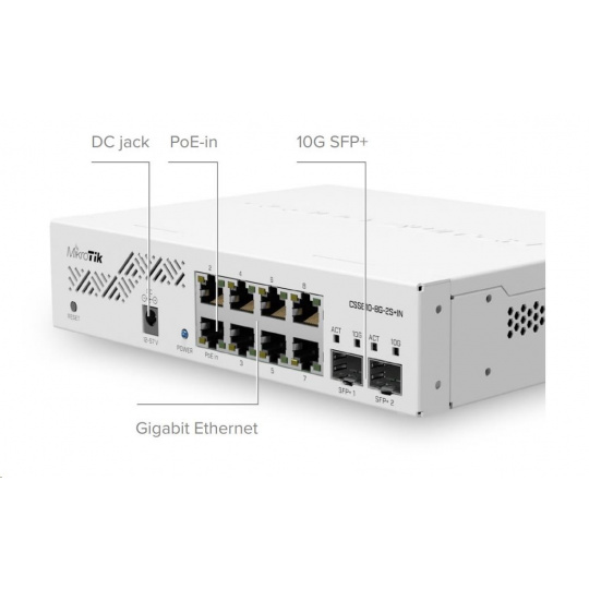 MikroTik Cloud Smart Switch CSS610-8G-2S+IN, 8 gigabitov.porty, PoE-In, 2xSFP+, SwOS