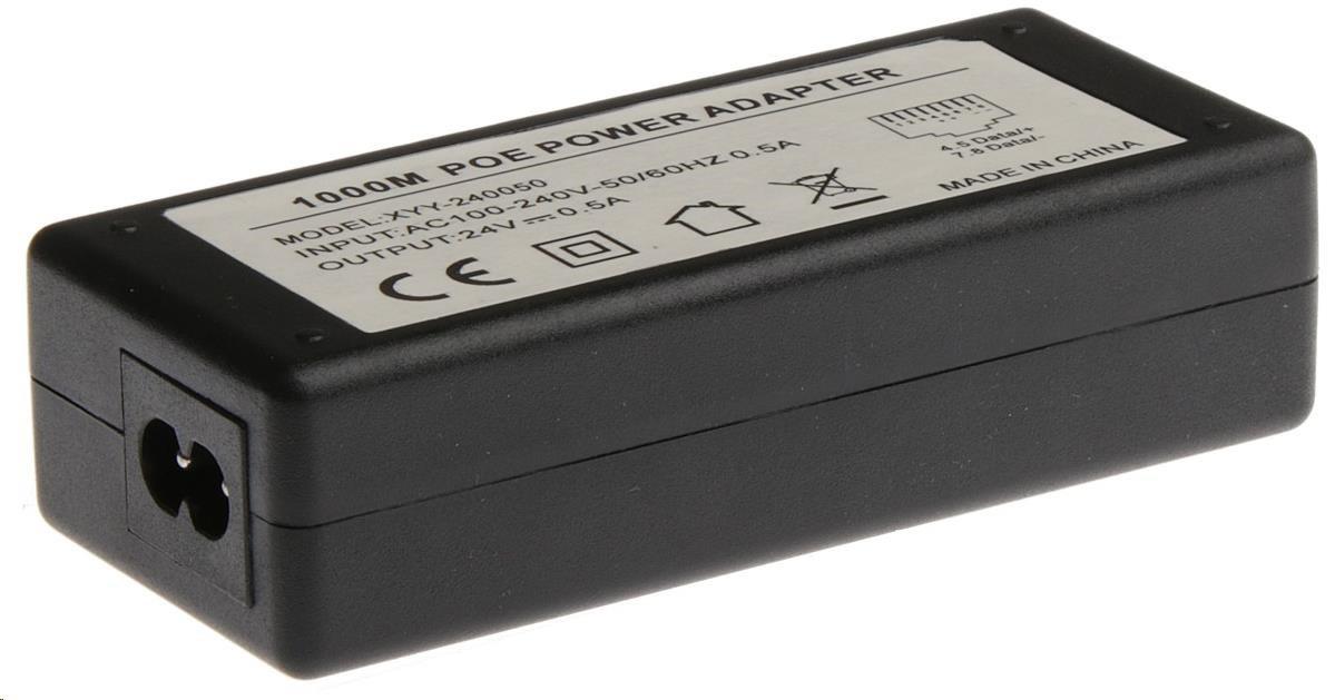 HS12-2400 je pasívny, gigabitový, stabilizovaný PoE adaptér s uzemnením, LED indikáciou, výstupným napätím 24 V a max. s prúdom 0.5A. Maximálny výstupný výkon je 12 W. Napätie sa privádza na tieto piny: 4,5 (+), 7,8 (-). Súčasťou balenia je 2-kolíkový napájací kábel...