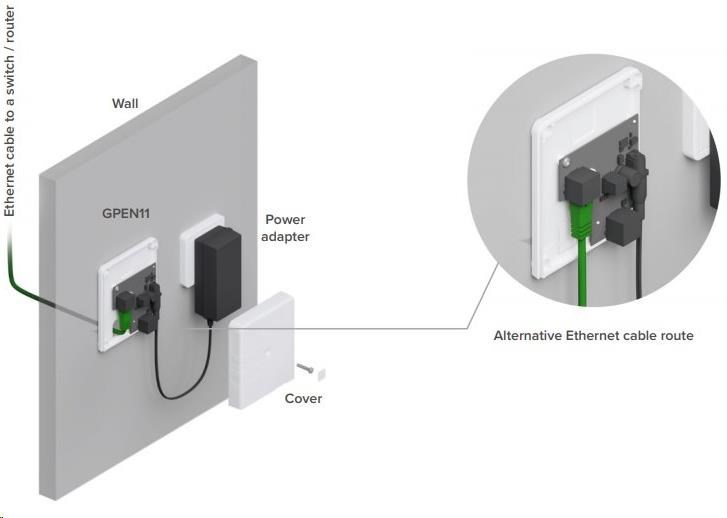 gPEN11 je nástenný injektor POE s dvoma gigabitovými ethernetovými portami, ktorý môžete použiť na napájanie zariadení určených na príjem alebo distribúciu pripojenia na mieste inštalácie. Výstupné napätie je rovnaké ako vstupné napätie a pohybuje sa v rozmedzí 12-57 V.