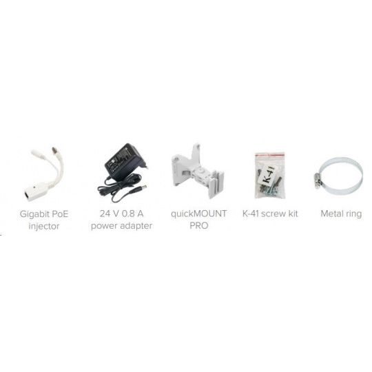 Balenie obsahuje: mANTBox 2 12s, gigabitový injektor PoE, napájací zdroj, montážnu sadu na stožiar, quickMOUNT pre