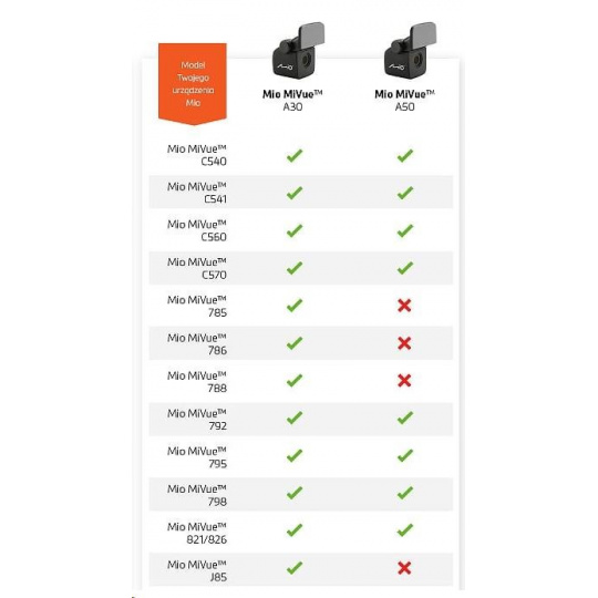 Kamera nie je kompatibilná s modelmi MiVue J85, 785, 786 a 788!