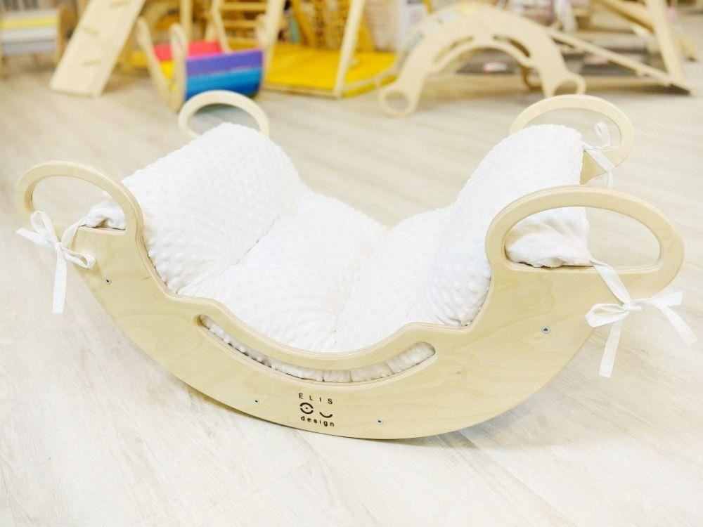 # Drevené detské Montessori hojdačka smile 6in1 vás prekvapí svojim dizajnom aj multifunkčnosťou. Hojdačka bude každý deň svojím širokým úsmevom lákať deti k príjemnému hojdaniu aj k zábavnej hre. Jej využitie je všestranné, môže byť hojdačkou, šmýkačkou, lezeckou, skrýšou aj sedačkou, pri doplnení obojstranným doskou aj detským nábytkom. Obojstranná doska nie je súčasťou hojdačky. Vďaka sviežim fresh farbám rozžiari každý detský interiér. Vyrobená je z tých najkvalitnejších materiálov, ručne dôkladne opracovaná a lakovaná farbami s atestom. Montessori hojdačka smile je širšia ako naše Montessori hojdačky 5in1, preto k tejto hojdačke ponúkame aj špeciálnu obojstrannú dosku, ktorá je doplnkom ku hojdačkám smile. Vďaka doske ľahko premeníte hojdačku smile na detský stolík. Obojstranná doska nie je súčasťou hojdačky, na využitie hojdačky ako nábytku je nutné dosku samostatne dokúpiť.