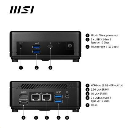 MSI PC Cubi 5 1M-484BEU, Core 3 100U, 8GB, N/A, N/A, No OS, Black