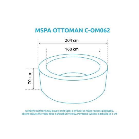 - Vonkajší priemer: 204 cm (po naplnení vodou, tolerancia ± 5%)