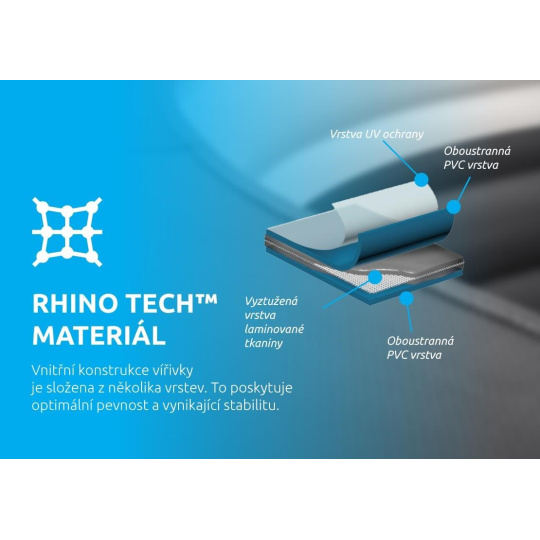 - Vonkajší materiál: RhinoTech Premium PVC - odolné a stály, tmavá šedá farba