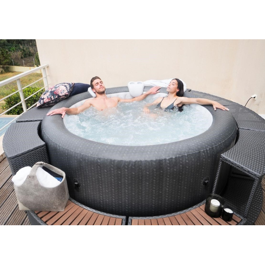 Designovo veľmi vydarená a rozmerná nafukovacia vírivka MSpa Ottoman C-OM062 až pre 6 osôb. Vnútorná fólia vírivej vane obsahuje antibakteriálnu tkaninu, ktorá znižuje množenie baktérií až o 99%.