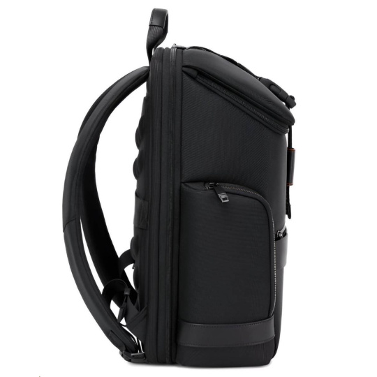 MYBALO ASTON Perfektní volba pro minimalisty s dobrým vkusem 6 ikon: - Nejtenčí batoh - Elegantní - Kapsa na notebook do 15,6" - Kapsa na tablet do 9" - Otevírání o 180 stupňů - USB a USB-C port - Drží tvar - Voděodolný - Skryté kapsy Elegantní a minimalistický Jedná se o velmi elegantní a minimalistický batoh. S tímto parťákem neuděláte chybu při běžném nošení do města, ani na důležité schůzce. Tenký batoh MYBALO Aston je batoh s vůbec nejmenší hloubkou z naší nabídky. Díky tomu působí elegantně a minimalisticky, ale i přesto se do něj vejdou všechny vaše nezbytnosti. Kvalitní voděodolný materiál, dlouhá životnost Kvalitní umělá kůže zajišťuje trvanlivost a odolnost batohu proti vodě a opotřebení. MYBALO Aston tak bude vaším společníkem opravdu dlouho. Drží tvar Batoh si zachovává svůj tvar také v případě, že jej budete mít úplně prázdný. Vestavěný USB a USB-C port Nabíjejte svá elektronická zařízení kdekoli a kdykoli díky vestavěnému USB a USB-C portu. Popruh k uchycení na kufr Cestujte pohodlně. Kdykoli chcete mít volná záda, jednoduše připevněte batoh na rukojeť svého kufru. Pohodlné polstrování Užijte si komfortní nošení díky kvalitnímu a prodyšnému polstrování ramenních popruhů a zádové části. Další praktické kapsy Zorganizujte si pohodlně a snadno své věci díky množství vychytaných kapes. Skryté kapsy V zádové části a na ramenním popruhu najdete skryté kapsy pro bezpečné uložení cenností. Vnitřní kapsy Vnitřní kapsy slouží pro snadnou organizaci všech vašich věcí. Přední kapsa Přední kapsa je určena pro věci, které chcete mít rychle a snadno po ruce. Parametry: - Rozměry: 46 x 30 x 9 cm - Objem: 11 l - Hmotnost: 1,19 kg - Kapsa na notebook: Ano (do vel. 15,6") - Kapsa na tablet: Ano (do vel. 9") - USB port: Ano - Voděodolnost: Ano - Hlavní materiál: Ekokůže + Polyester - Podšívka: Polyester - Barva: Černá.