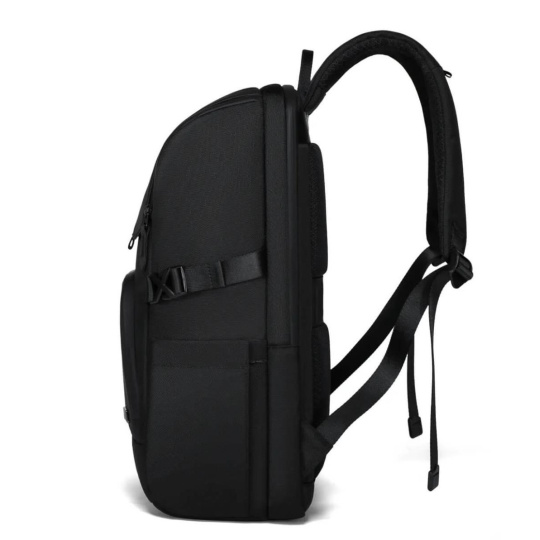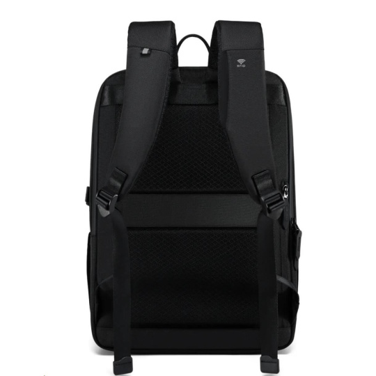 MYBALO ASTON Perfektní volba pro minimalisty s dobrým vkusem  6 ikon: - Nejtenčí batoh - Elegantní - Kapsa na notebook do 15,6" - Kapsa na tablet do 9" - Otevírání o 180 stupňů - USB a USB-C port - Drží tvar - Voděodolný - Skryté kapsy  Elegantní a minimalistický Jedná se o velmi elegantní a minimalistický batoh. S tímto parťákem neuděláte chybu při běžném nošení do města, ani na důležité schůzce.  Tenký batoh MYBALO Aston je batoh s vůbec nejmenší hloubkou z naší nabídky. Díky tomu působí elegantně a minimalisticky, ale i přesto se do něj vejdou všechny vaše nezbytnosti.  Kvalitní voděodolný materiál, dlouhá životnost Kvalitní umělá kůže zajišťuje trvanlivost a odolnost batohu proti vodě a opotřebení. MYBALO Aston tak bude vaším společníkem opravdu dlouho.  Drží tvar Batoh si zachovává svůj tvar také v případě, že jej budete mít úplně prázdný.  Vestavěný USB a USB-C port Nabíjejte svá elektronická zařízení kdekoli a kdykoli díky vestavěnému USB a USB-C portu.  Popruh k uchycení na kufr Cestujte pohodlně. Kdykoli chcete mít volná záda, jednoduše připevněte batoh na rukojeť svého kufru.  Pohodlné polstrování Užijte si komfortní nošení díky kvalitnímu a prodyšnému polstrování ramenních popruhů a zádové části.  Další praktické kapsy Zorganizujte si pohodlně a snadno své věci díky množství vychytaných kapes.  Skryté kapsy V zádové části a na ramenním popruhu najdete skryté kapsy pro bezpečné uložení cenností.  Vnitřní kapsy Vnitřní kapsy slouží pro snadnou organizaci všech vašich věcí.  Přední kapsa Přední kapsa je určena pro věci, které chcete mít rychle a snadno po ruce.  Parametry: - Rozměry: 46 x 30 x 9 cm - Objem: 11 l - Hmotnost: 1,19 kg - Kapsa na notebook: Ano (do vel. 15,6") - Kapsa na tablet: Ano (do vel. 9") - USB port: Ano - Voděodolnost: Ano - Hlavní materiál: Ekokůže + Polyester - Podšívka: Polyester - Barva: Černá