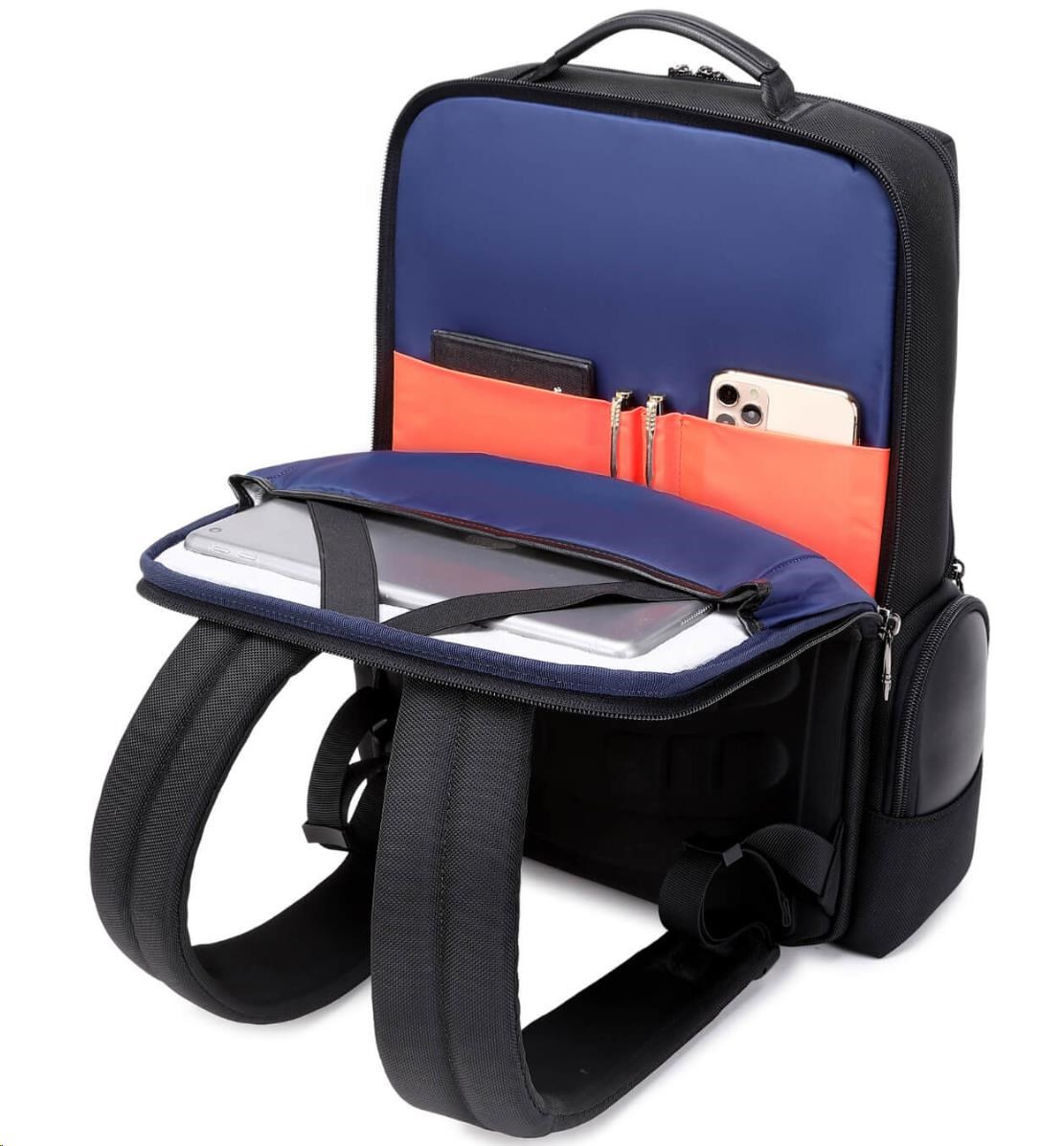 MYBALO ASTON Perfektní volba pro minimalisty s dobrým vkusem 6 ikon: - Nejtenčí batoh - Elegantní - Kapsa na notebook do 15,6" - Kapsa na tablet do 9" - Otevírání o 180 stupňů - USB a USB-C port - Drží tvar - Voděodolný - Skryté kapsy Elegantní a minimalistický Jedná se o velmi elegantní a minimalistický batoh. S tímto parťákem neuděláte chybu při běžném nošení do města, ani na důležité schůzce. Tenký batoh MYBALO Aston je batoh s vůbec nejmenší hloubkou z naší nabídky. Díky tomu působí elegantně a minimalisticky, ale i přesto se do něj vejdou všechny vaše nezbytnosti. Kvalitní voděodolný materiál, dlouhá životnost Kvalitní umělá kůže zajišťuje trvanlivost a odolnost batohu proti vodě a opotřebení. MYBALO Aston tak bude vaším společníkem opravdu dlouho. Drží tvar Batoh si zachovává svůj tvar také v případě, že jej budete mít úplně prázdný. Vestavěný USB a USB-C port Nabíjejte svá elektronická zařízení kdekoli a kdykoli díky vestavěnému USB a USB-C portu. Popruh k uchycení na kufr Cestujte pohodlně. Kdykoli chcete mít volná záda, jednoduše připevněte batoh na rukojeť svého kufru. Pohodlné polstrování Užijte si komfortní nošení díky kvalitnímu a prodyšnému polstrování ramenních popruhů a zádové části. Další praktické kapsy Zorganizujte si pohodlně a snadno své věci díky množství vychytaných kapes. Skryté kapsy V zádové části a na ramenním popruhu najdete skryté kapsy pro bezpečné uložení cenností. Vnitřní kapsy Vnitřní kapsy slouží pro snadnou organizaci všech vašich věcí. Přední kapsa Přední kapsa je určena pro věci, které chcete mít rychle a snadno po ruce. Parametry: - Rozměry: 46 x 30 x 9 cm - Objem: 11 l - Hmotnost: 1,19 kg - Kapsa na notebook: Ano (do vel. 15,6") - Kapsa na tablet: Ano (do vel. 9") - USB port: Ano - Voděodolnost: Ano - Hlavní materiál: Ekokůže + Polyester - Podšívka: Polyester - Barva: Černá