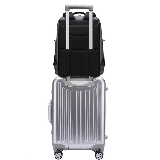 MYBALO ASTON Perfektní volba pro minimalisty s dobrým vkusem  6 ikon: - Nejtenčí batoh - Elegantní - Kapsa na notebook do 15,6" - Kapsa na tablet do 9" - Otevírání o 180 stupňů - USB a USB-C port - Drží tvar - Voděodolný - Skryté kapsy  Elegantní a minimalistický Jedná se o velmi elegantní a minimalistický batoh. S tímto parťákem neuděláte chybu při běžném nošení do města, ani na důležité schůzce.  Tenký batoh MYBALO Aston je batoh s vůbec nejmenší hloubkou z naší nabídky. Díky tomu působí elegantně a minimalisticky, ale i přesto se do něj vejdou všechny vaše nezbytnosti.  Kvalitní voděodolný materiál, dlouhá životnost Kvalitní umělá kůže zajišťuje trvanlivost a odolnost batohu proti vodě a opotřebení. MYBALO Aston tak bude vaším společníkem opravdu dlouho.  Drží tvar Batoh si zachovává svůj tvar také v případě, že jej budete mít úplně prázdný.  Vestavěný USB a USB-C port Nabíjejte svá elektronická zařízení kdekoli a kdykoli díky vestavěnému USB a USB-C portu.  Popruh k uchycení na kufr Cestujte pohodlně. Kdykoli chcete mít volná záda, jednoduše připevněte batoh na rukojeť svého kufru.  Pohodlné polstrování Užijte si komfortní nošení díky kvalitnímu a prodyšnému polstrování ramenních popruhů a zádové části.  Další praktické kapsy Zorganizujte si pohodlně a snadno své věci díky množství vychytaných kapes.  Skryté kapsy V zádové části a na ramenním popruhu najdete skryté kapsy pro bezpečné uložení cenností.  Vnitřní kapsy Vnitřní kapsy slouží pro snadnou organizaci všech vašich věcí.  Přední kapsa Přední kapsa je určena pro věci, které chcete mít rychle a snadno po ruce.  Parametry: - Rozměry: 46 x 30 x 9 cm - Objem: 11 l - Hmotnost: 1,19 kg - Kapsa na notebook: Ano (do vel. 15,6") - Kapsa na tablet: Ano (do vel. 9") - USB port: Ano - Voděodolnost: Ano - Hlavní materiál: Ekokůže + Polyester - Podšívka: Polyester - Barva: Černá