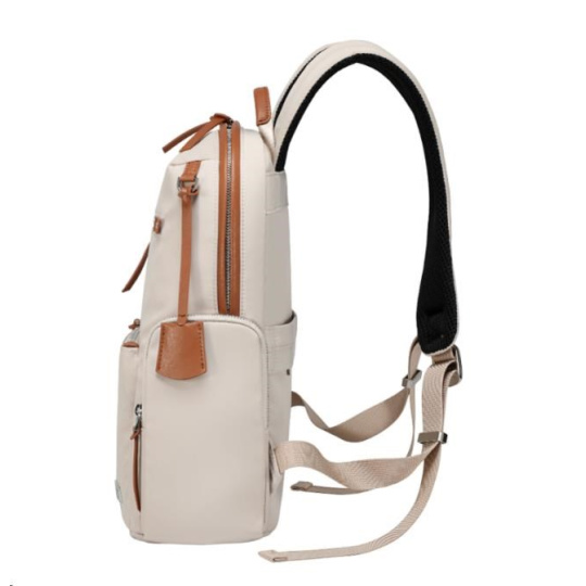 Batoh je dostupný vo dvoch farebných variantoch: béžové s hnedými detailami a čierne, univerzálny k rôznemu oblečeniu.