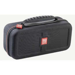 Toto väčšie prepravné puzdro od spoločnosti Nacon oceníte, ak budete chcieť bezpečne a pohodlne prenášať svoju hernú konzolu Nintendo Switch 2 vrátane jej základného príslušenstva. Puzdro pojme nielen samotnú konzolu, ale podľa potreby aj dokovaciu stanicu, nový ovládač Pro Controller alebo držiak Joy-Con 2 Charging Grip. Zároveň ponúka tiež samostatnú priehradku pre napájací adaptér s káblom a prepojovací HDMI kábel. Nastaviteľný stojan v hornej časti puzdra, pri hraní umožňujúci pohodlnejšie sledovanie diania na obrazovke, ochráni počas prepravy ako obrazovku, tak aj analógové páčky konzoly a na jeho vnútornej strane navyše nájdete dvanásť kapsičiek na uloženie herných kariet. Súčasťou balenia sú aj dve menšie plastové puzdrá na microSD karty a čistiaci handričku s logom Nintendo Switch 2. Puzdro je kompatibilné tiež s konzolami Switch a Switch – OLED Model, vrátane ich príslušenstva.