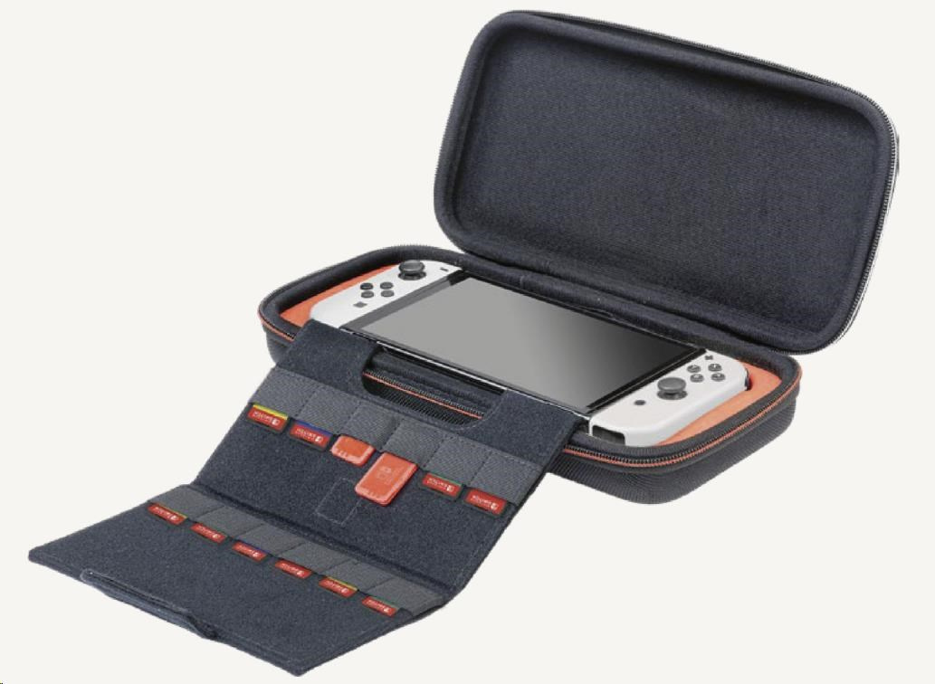 • Vyberateľná vnútorná výstelka umožňuje prenášať v puzdre bezpečne aj konzolu Switch alebo Switch – OLED Model.