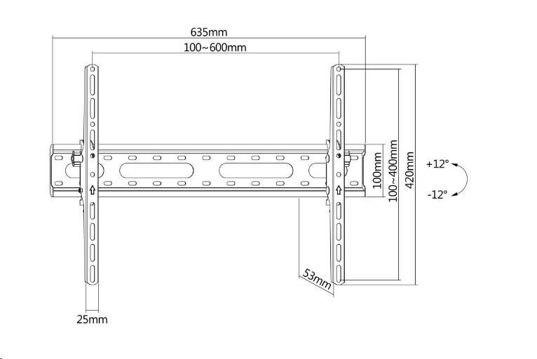 Držiak na televízory a displeje Fiber Novelty FN45T Držiak na televízory a displeje 37" - 75", nakláňanie +12° / -12°, vzdialenosť od steny 53mm, aretácia proti vysadenia, VESA štandardy 100x100 až 600x400, nosnosť 45kg Nakláňací držiak na televízory a displeje Fiber Novelty FN45T Kvalitný nástenný držiak ideálny pre bezpečné zavesenie televízorov alebo displejov s uhlopriečkou 37" až 75". Držiak umožňuje jednoduché nakláňanie obrazovky pod uhlom od +12° až do -12°, potrebný uhol náklonu ľahko zaaretuje. Vzdialenosť obrazovky od steny 53mm, zabezpečenie proti vysadeniu, rozmery základovej dosky 635x100mm, materiál kov. Držiak podporuje VESA štandardy od 100x100 do 600x400mm, nosnosť 45kg. Balenie obsahuje inštalačný materiál. Záruka na držiak 5 rokov. Technické údaje: nosnosť 45 kg na televízory, displeje a monitory s uhlopriečkou 37" - 75" podporuje VESA štandardy 100x100 až 600x400 možnosť nakláňania +12° / -12° zabezpečenie obrazovky v požadovanom náklone vzdialenosť od steny 53mm aretačný mechanizmus proti vysadeniu rozmer základovej dosky 635 x 100 mm balenie obsahuje inštalačný materiál materiál kov farebné prevedenie čierne záruka 5 rokov