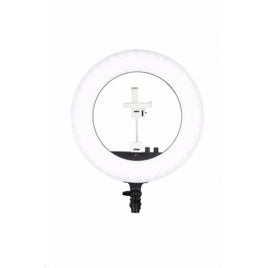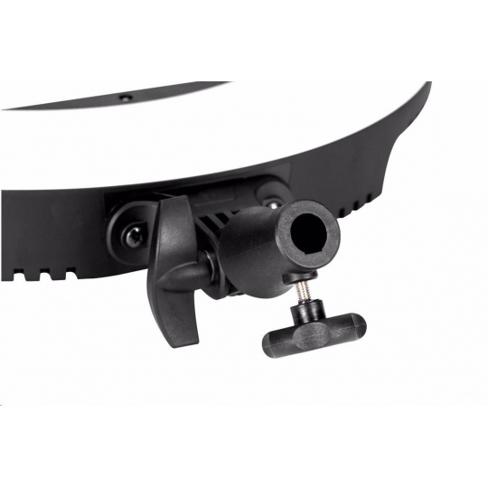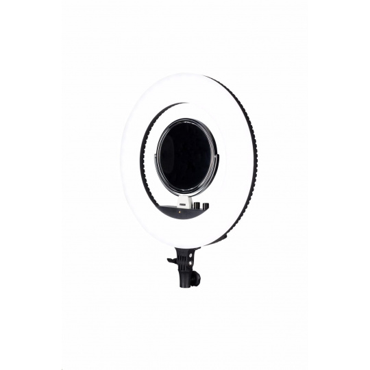 LED kruhové svetlo Halo 18 je možné napájať dodávaným sieťovým adaptérom. Vďaka štandardnému závitu 5/8" je možné kruhové svetlo namontovať na takmer akýkoľvek svetelný statív (nie je súčasťou balenia). Táto súprava obsahuje celý rad príslušenstva vrátane držiaka na mobilný telefón a obojstranného zrkadla na líčenie, z ktorých jedno je možné pripevniť priamo do stredu kruhového svetla.