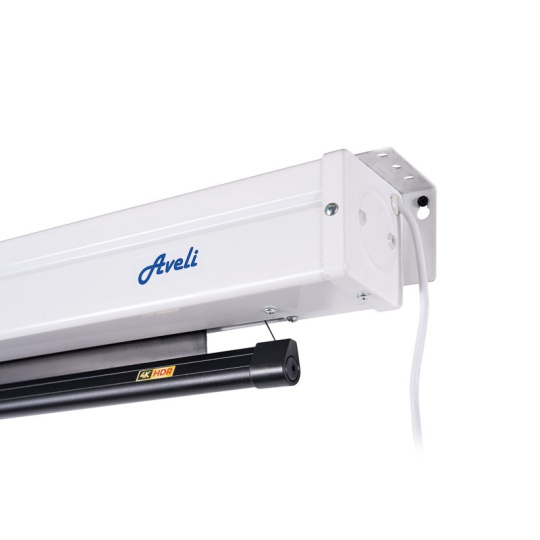 Nástenné elektrické projekčné plátno AVELI PREMIUM s diaľkovým ovládaním je možné inštalovať na stenu alebo strop. Vhodné pre projektory so svetelným výkonom 4000 ANSI a vyšším. Využitie plátna je univerzálne.