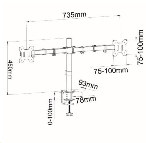 Najlacnejší dvojmonitorový držiak ErgoSolid FN40 Lacný, no stále vynikajúcej kvality, držiak na 2 monitory do kancelárií, školských učební, firiem a podnikov - plne nastaviteľný, záruka 5 rokov Aj vynikajúci držiak môže byť lacný - ponúkame Vám za bezkonkurenčnú cenu stolný dvojmonitorový držiak pre monitory 13-29" s nastavením vzdialenosti, výšky, náklonu, otáčaním do strán a funkciou pivot (otočenie monitora na šírku alebo na výšku). Držiak má veľmi pevnú spoľahlivú konštrukciu z ocele. Dodávaný je v čiernom prevedení a v balení nájdete okrem inštalačného materiálu aj 2 typy úchytov na stolovú dosku (na okraj stolu pomocou sťahováku a do priestoru stola pomocou skrutkice - nutné vyvŕtanie 1 otvoru s priemerom 8mm). Na držiak poskytujeme záruku 5 rokov. Ergosolid FN40 - precízny držiak na 2 monitory za najlepšiu cenu - nastavenie 3D, záruka 5 rokov - držiak do kancelárie, do školy, učebne, firmy alebo podniku Za kvalitu držiaku plne ručíme, nebudete-li spokojní, môžete nám tovar vrátiť do 30 dní od kúpy. Táto záruka platí aj pri nákupe na IČO. Najlacnejší dvojmonitorový držiak - zavešenie 2 monitorov, nastavenie 3D, TOP kvalita za bezkonkurenčnú cenu - držiaky Ergosolid FN40 Technické údaje: celková nosnosť 20kg maximálna hmotnosť 1 monitora 10kg podporuje VESA štandardy 75x75 a 100x100 univerzálny, vhodný na zavešenie monitorov s uhlopriečkou 13 až 29 palcov nezávislé nastavenie každého monitora otočenie do strán +/- 180° náklon +/- 45° funkcia PIVOT - otočenie monitora na šírku alebo na výšku nastavenie vzdialenosti monitora od úchyte dĺžka ramena 367mm 3 kĺby pre nastavenie polohy na každom ramene nastaviteľná výška ramien max. 430mm uchytenie na stolové dosky pri priemere 10mm až 100mm balenie obsahuje 2 typy uchytenia na stolové dosky (sťahovák + skrutkica) materiál oceľ farebné prevedenie čierne balenie obsahuje inštalačný materiál návod na inštaláciu v CZ záruka 5 rokov Najvýhodnejší dvojmonitorový držiak s 3D nastavením polohy monitora. Bezpečná a spoľahlivá konštrukcia, 2 typy uchytenia na stolové dosky s priemerom 10-100mm. Držiak podporuje VESA štandardy pre uchytenie monitora: VESA 75x75 VESA 100x100
